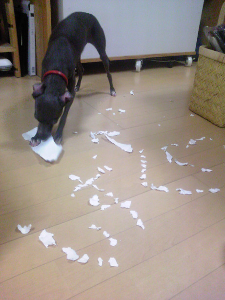 破くことに快感を感じていらっしゃるご様子~。(そういや、子どもたちもやったわ、こんなこと。)